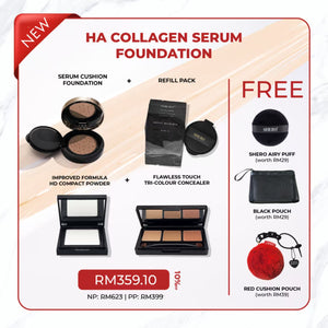 Experience the next evolution in cushion foundations with our upgraded HA Collagen Serum Cushion Foundation – a skin-caring hybrid that instantly lifts, smooths, and perfects with every tap.